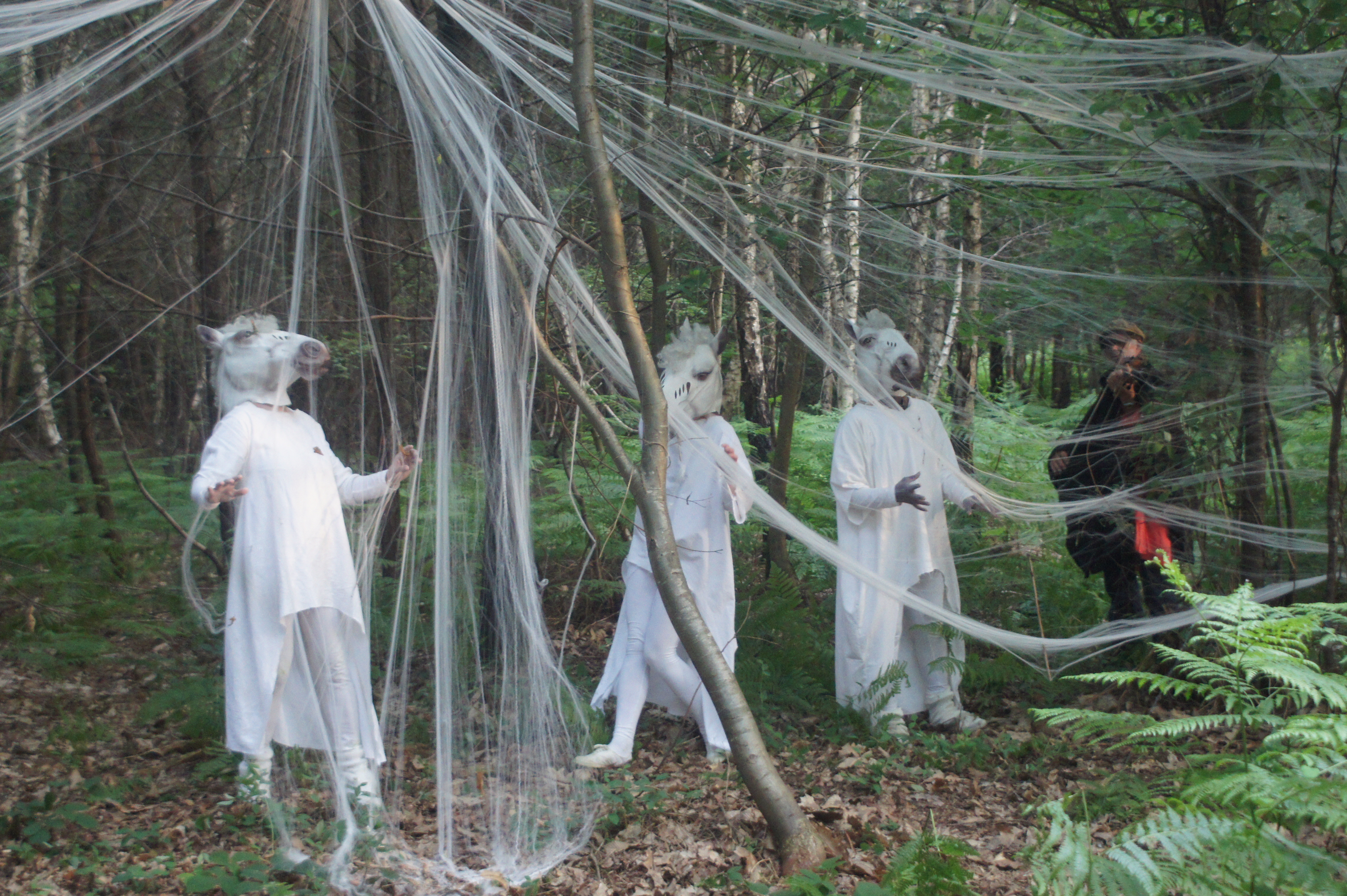Le projet « Par les communes », mené par le Parc naturel régional de la Montagne de Reims en collaboration avec le Diable à 4 pattes, s’achève en 2018, avec les commémorations du centenaire de l’Armistice. Cette clôture de résidence prend la forme d’un grand spectacle participatif, destiné à être représenté six fois dans la forêt des Faux de Verzy. Une partie « déambulation » peuplée de figurants, emmène le spectateur à la découverte des lieux et le plonge tout doucement dans l’univers du spectacle, celui des morts de la Grande Guerre et des anciens dieux…