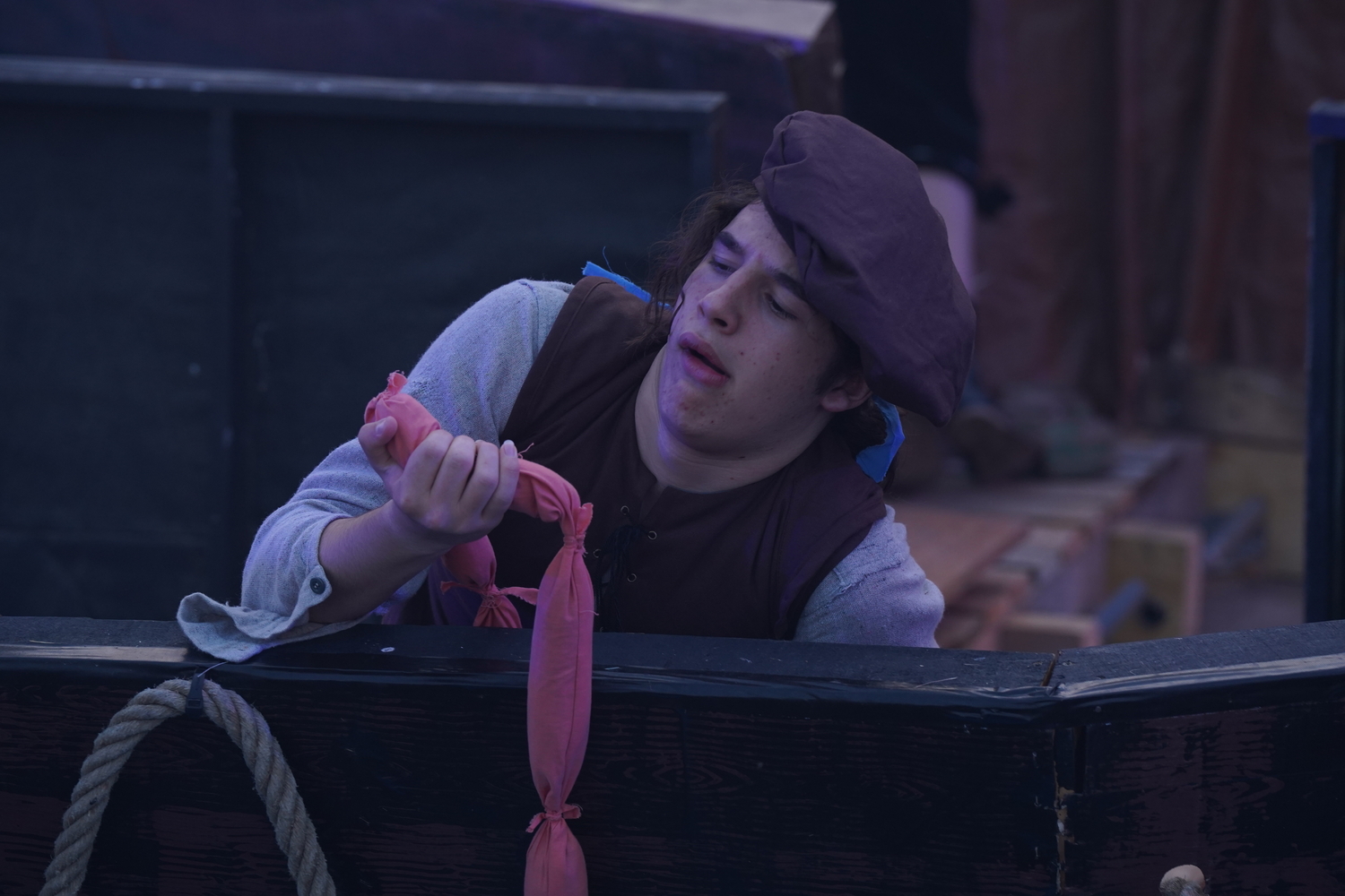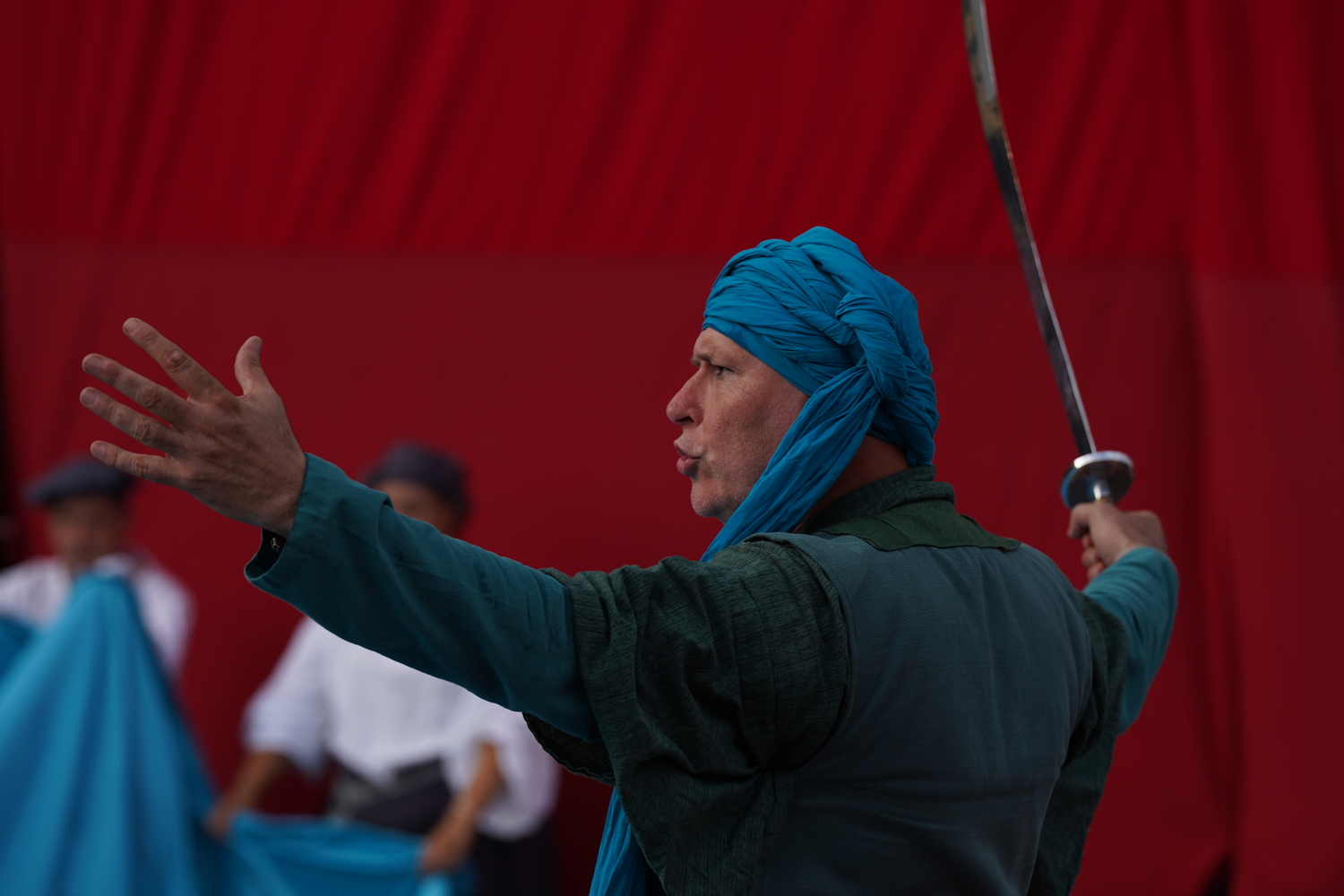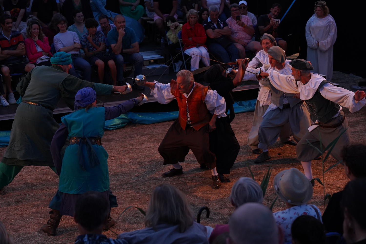 Enfin, une fois de plus, ce sont des enfants qui, pour beaucoup, tiennent la pièce. Nécessité fait loi, puisqu’ils sont nombreux à participer aux ateliers, mais pas seulement. En réalité, de plus en plus, je tiens que les personnages d’enfants sont les meilleurs guides pour les spectateurs novices ou peu coutumiers des théâtres, dont souvent ceux du Diable à 4 pattes. Un enfant sur les planches persuade mieux qu’un adulte de voir la mer dans le tissu, la lame dans le bâton, le dragon dans l’ombre, etc.